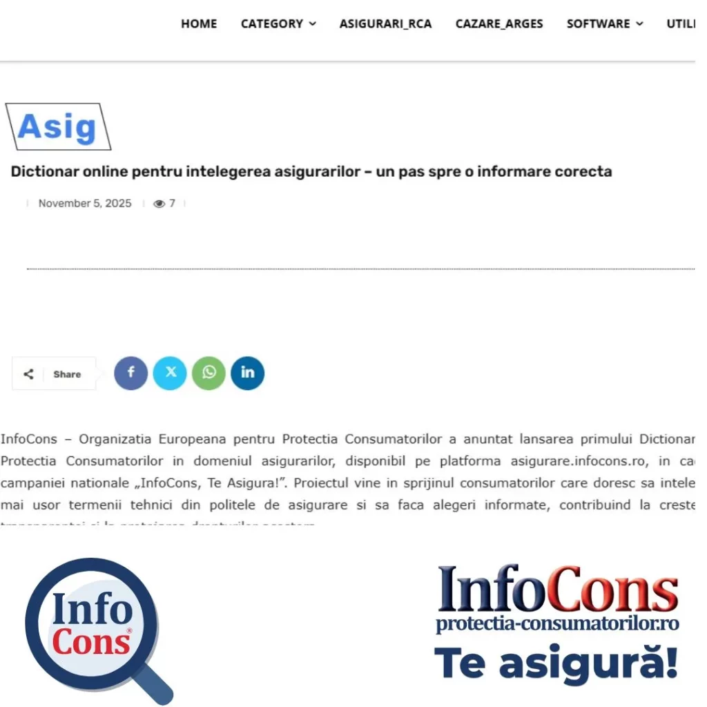 InfoCons protectia consumatorilor de asigurare : InfoCons lansează primul Dicționar de Protecția Consumatorilor în domeniul asigurărilor – Ziare Az